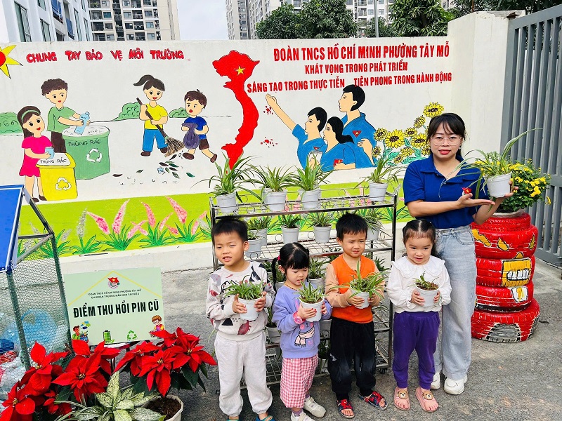 Ve tranh tường bích họa với chủ đề “Thanh niên trong kỷ nguyên vươn mình”, mô hình đã góp phần lan tỏa lối sống xanh, nâng cao ý thức bảo vệ môi trường và làm đẹp cảnh quan nhà trường.