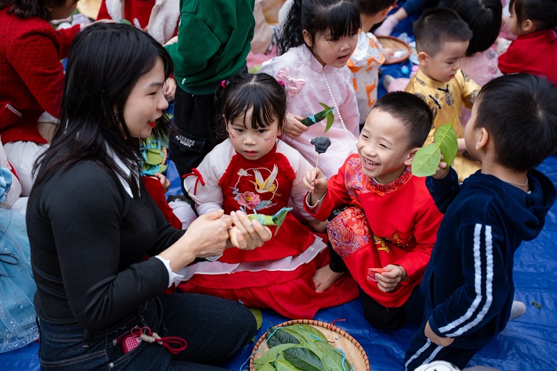 Hội chợ được tổ chức với nhiều gian hàng mang đậm màu sắc làng quê Việt Nam như: các món bánh truyền thống ngọt bùi, các gian hàng tô tượng đầy màu sắc, hoa và rau nhà trồng, trà hoa, trò chơi câu cá,… Ở đây các bé không chỉ được vui chơi mà còn được gieo mầm tình yêu văn hóa truyền thống, học cách chia sẻ, giao tiếp, mạnh dạn và tự tin hơn trong các hoạt động tập thể. Đồng thời, hoạt động này cũng thắt chặt thêm sự gắn kết giữa gia đình với nhà trường trong việc tổ chức các hoạt động cho trẻ.